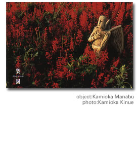 恒例となったクリスマス展示会。 DMの作品は、天使をイメージして作られました。 「この作品のいるところは、どこでも天国になりうる」というコンセプトでした。 このとき展示された新作は、写真集にも収録されていないため、知る人ぞ知るという感じの作品達です。 椅子に座ってフレームを持った「記憶」、大地から生まれでたような「めざめ」など。 写真集第3弾に向けて、ゆっくりと動いています。 お楽しみに。(2004年8月現在)